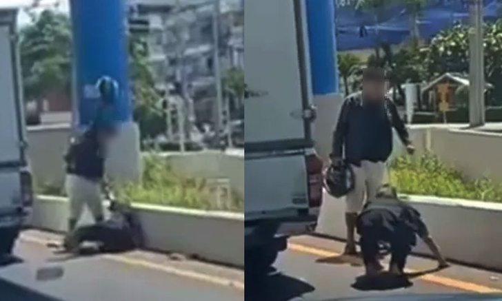 ไม่พอใจลุง ! หนุ่มมอเตอร์ไซค์ไม่พอใจลุงแท็กซี่ชนท้าย คว้าหมวกกันน็อกฟาดลุงเลือดอาบ